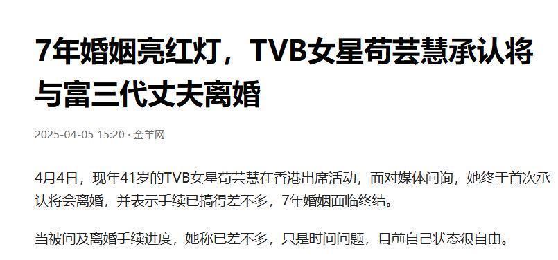 最终,在9月14日,再次面对港媒采访,苟芸慧官宣离婚成功的消息。
