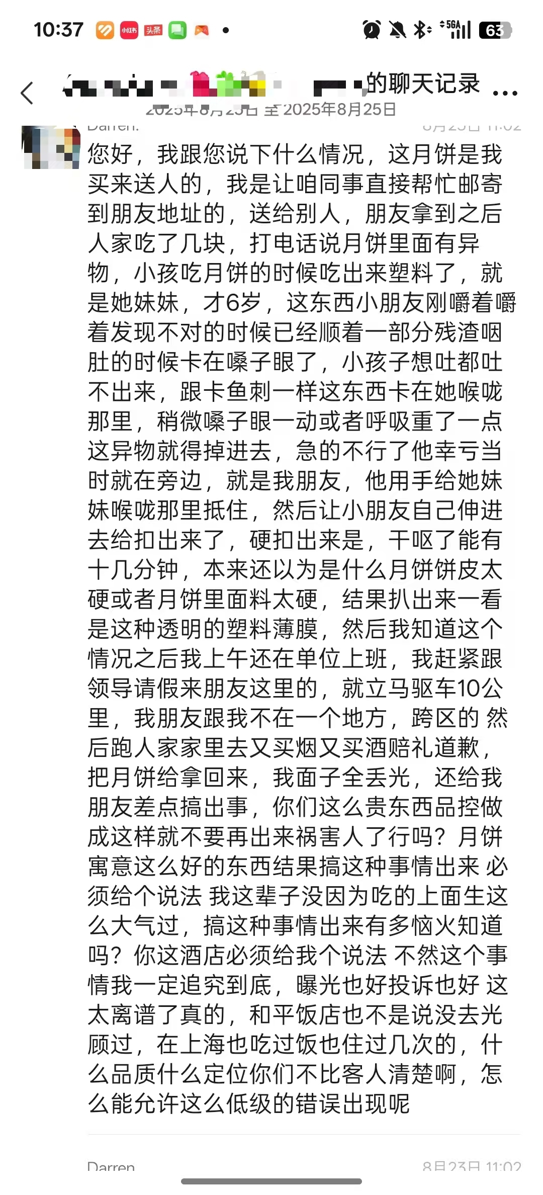 2025年9月4日晚,静安公安分局南京西路派出所接到辖区内某高档酒店报警牛千万,称一名男性顾客凌某以“月饼中发现塑料片”为由,索赔4980元。该男子声称月饼赠予亲友后,有儿童食用时发现异物,导致其“颜面尽失”,并威胁如不赔偿将通过网络公开事件。酒店方出于品牌声誉考虑,尽管最终向其支付了款项,但仍怀疑其涉嫌恶意索赔,遂报警求助。